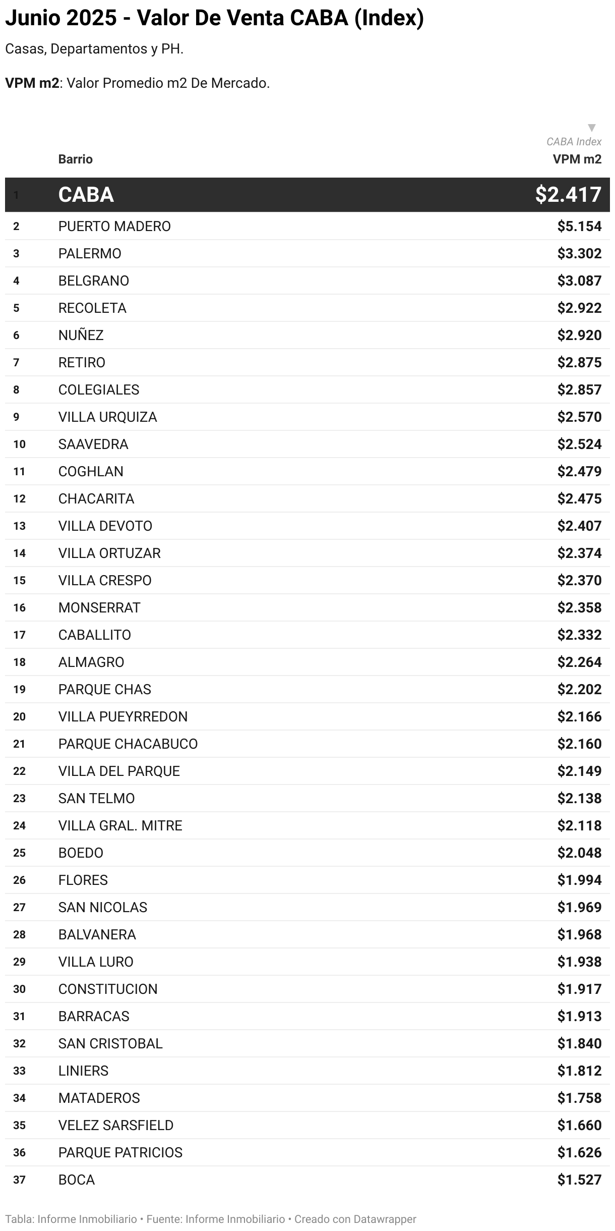 Junio 2025 en VENTA: Valor Del Metro Cuadrado En CABA Por Barrio