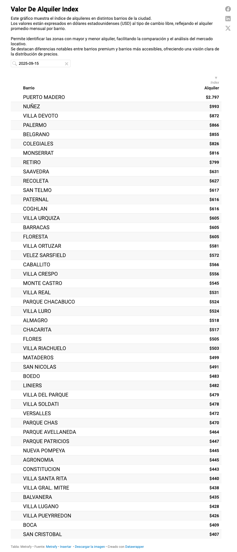 Septiembre 2025 en ALQUILER: Valor De Las Propiedades En Alquiler En CABA Por Barrio